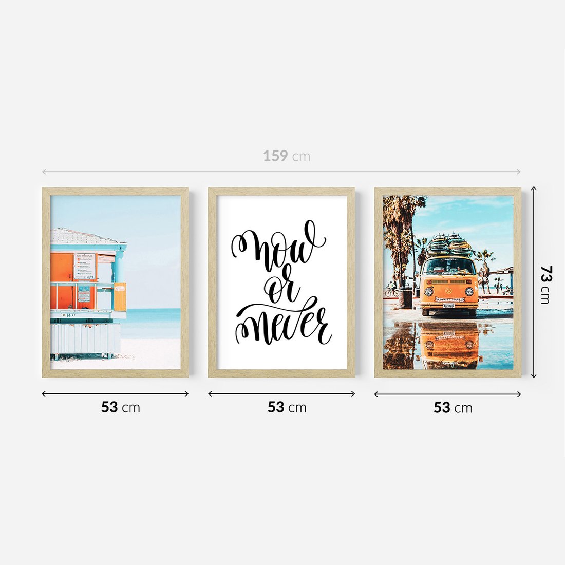 Zestaw obrazy w ramie 50x70 galeria - Pozytywny, napis, podróż, lato, salon - rama drewno