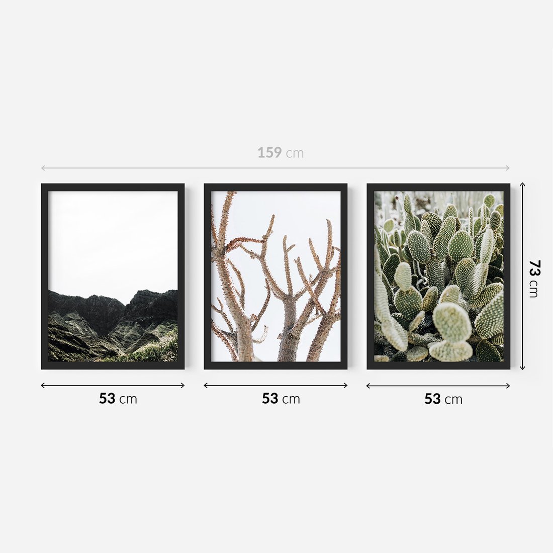 Zestaw obrazy w ramie 50x70 galeria - Pustynia, kaktusy, zieleń, boho - rama czarna