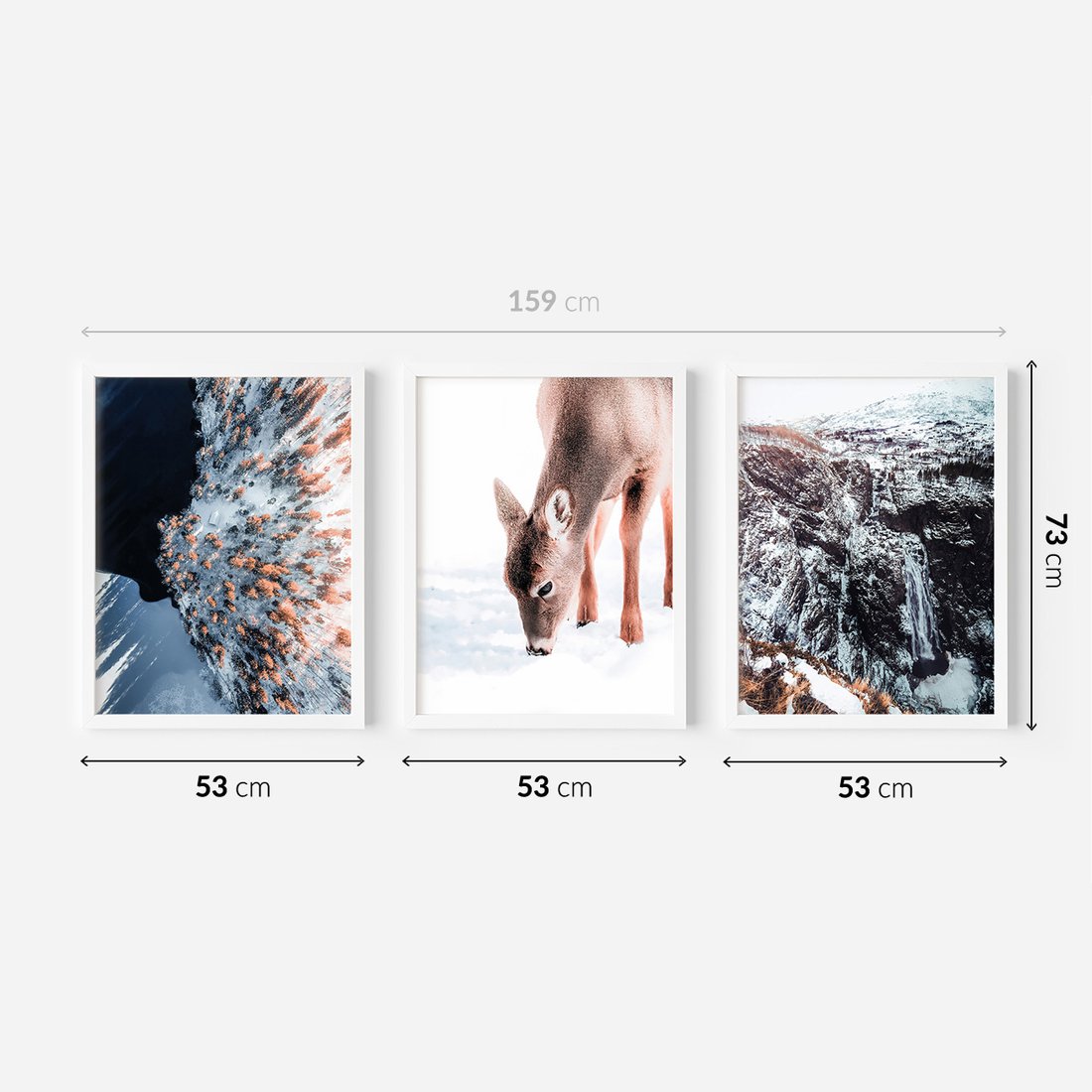 Zestaw obrazy w ramie 50x70 galeria - Sarna, zima, w, górach - rama biała
