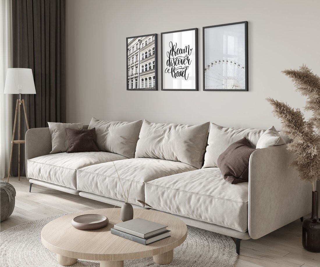 Dodaj elegancji i stylu swojemu wnętrzu dzięki zestawowi starannie wykonanych obrazów w ramie. Ten unikalny komplet to idealne połączenie nowoczesnego designu i ponadczasowego piękna, które doskonale wkomponuje się w każde pomieszczenie. W skład kompletu wchodzą trzy odrębne obrazy, które można zawiesić obok siebie lub rozmieszczać w różnych miejscach, tworząc spersonalizowaną dekorację.