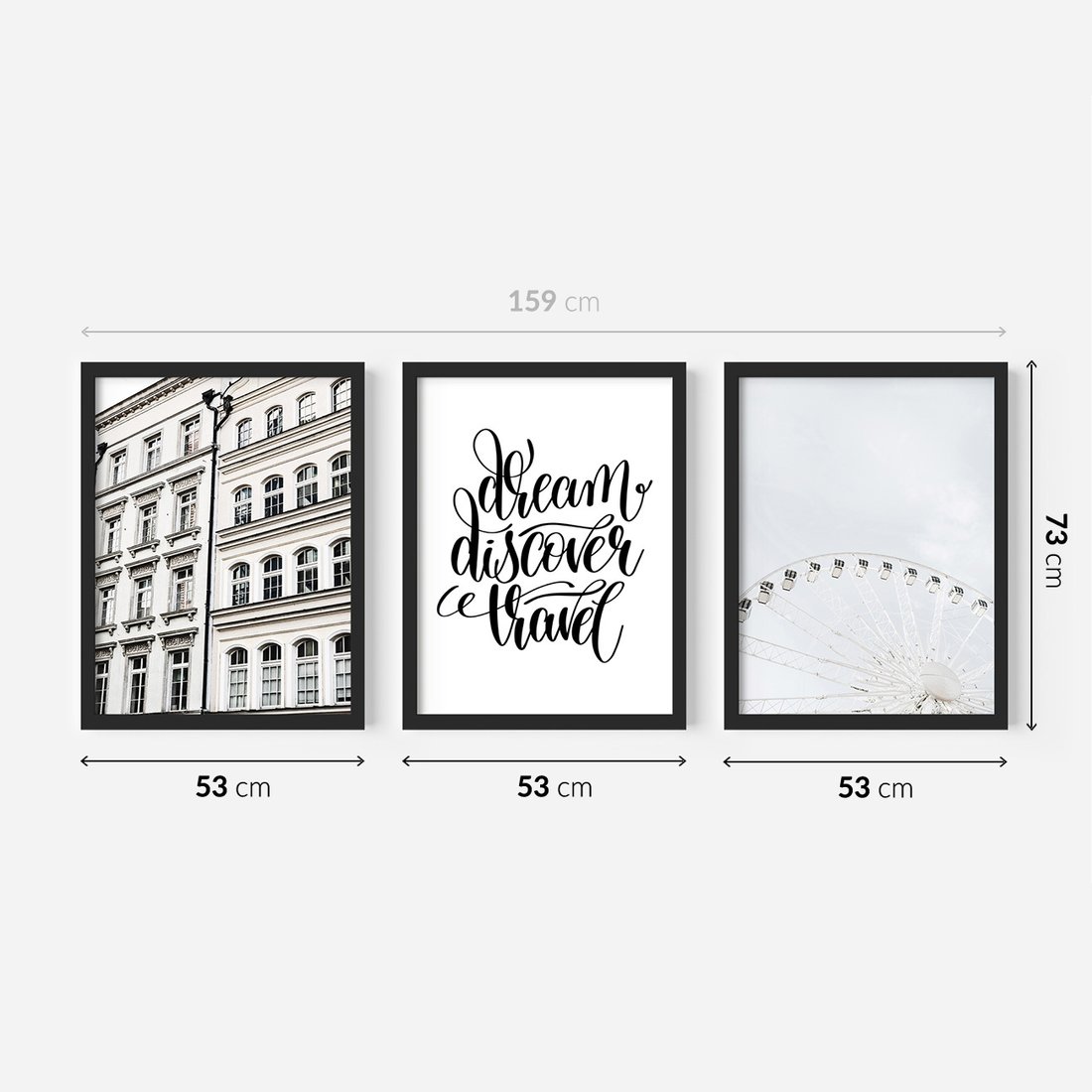 Zestaw obrazy w ramie 50x70 galeria - Typografia, podróż, miasto - rama czarna