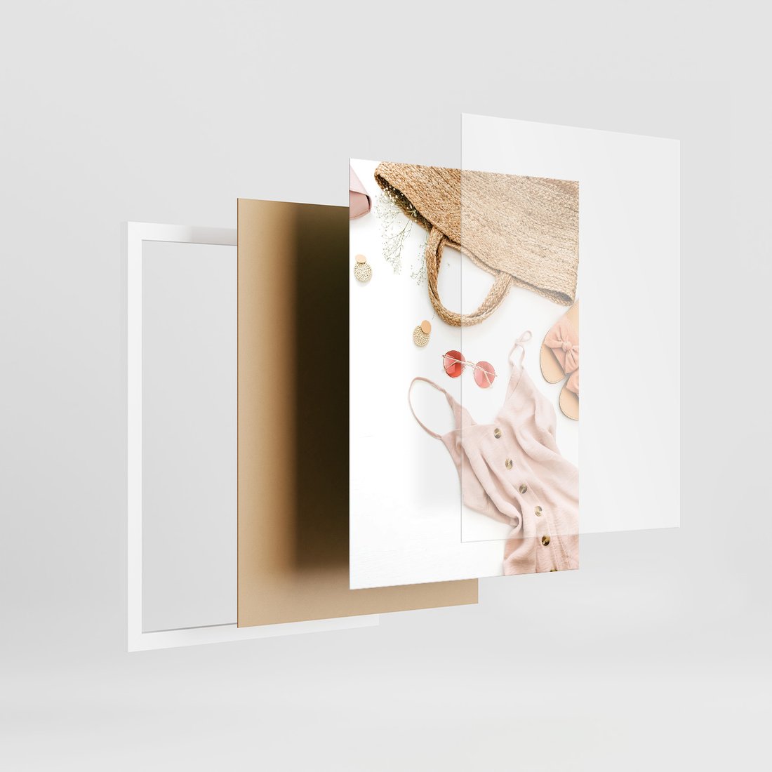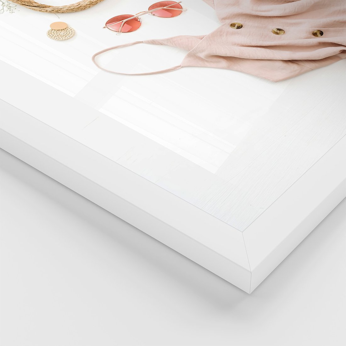 Zestaw obrazy w ramie 50x70 galeria - Wakacje, klapki, torba, moda - rama biała