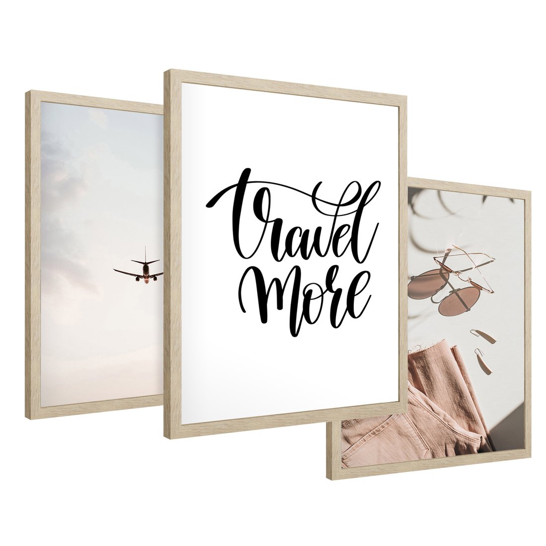 Zestaw obrazy w ramie 50x70 galeria - Wakacje, podróż, samolot, typografia - rama drewno