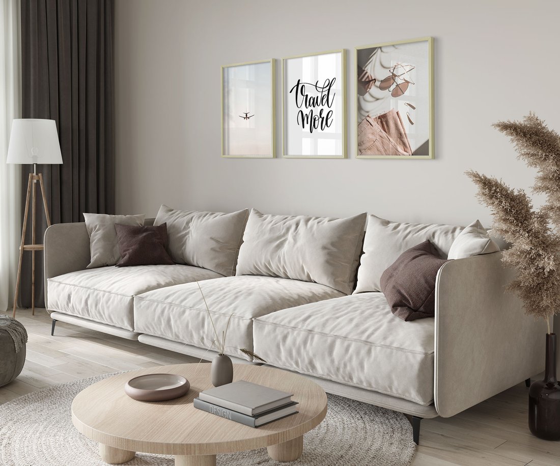 Dodaj elegancji i stylu swojemu wnętrzu dzięki zestawowi starannie wykonanych obrazów w ramie. Ten unikalny komplet to idealne połączenie nowoczesnego designu i ponadczasowego piękna, które doskonale wkomponuje się w każde pomieszczenie. W skład kompletu wchodzą trzy odrębne obrazy, które można zawiesić obok siebie lub rozmieszczać w różnych miejscach, tworząc spersonalizowaną dekorację.