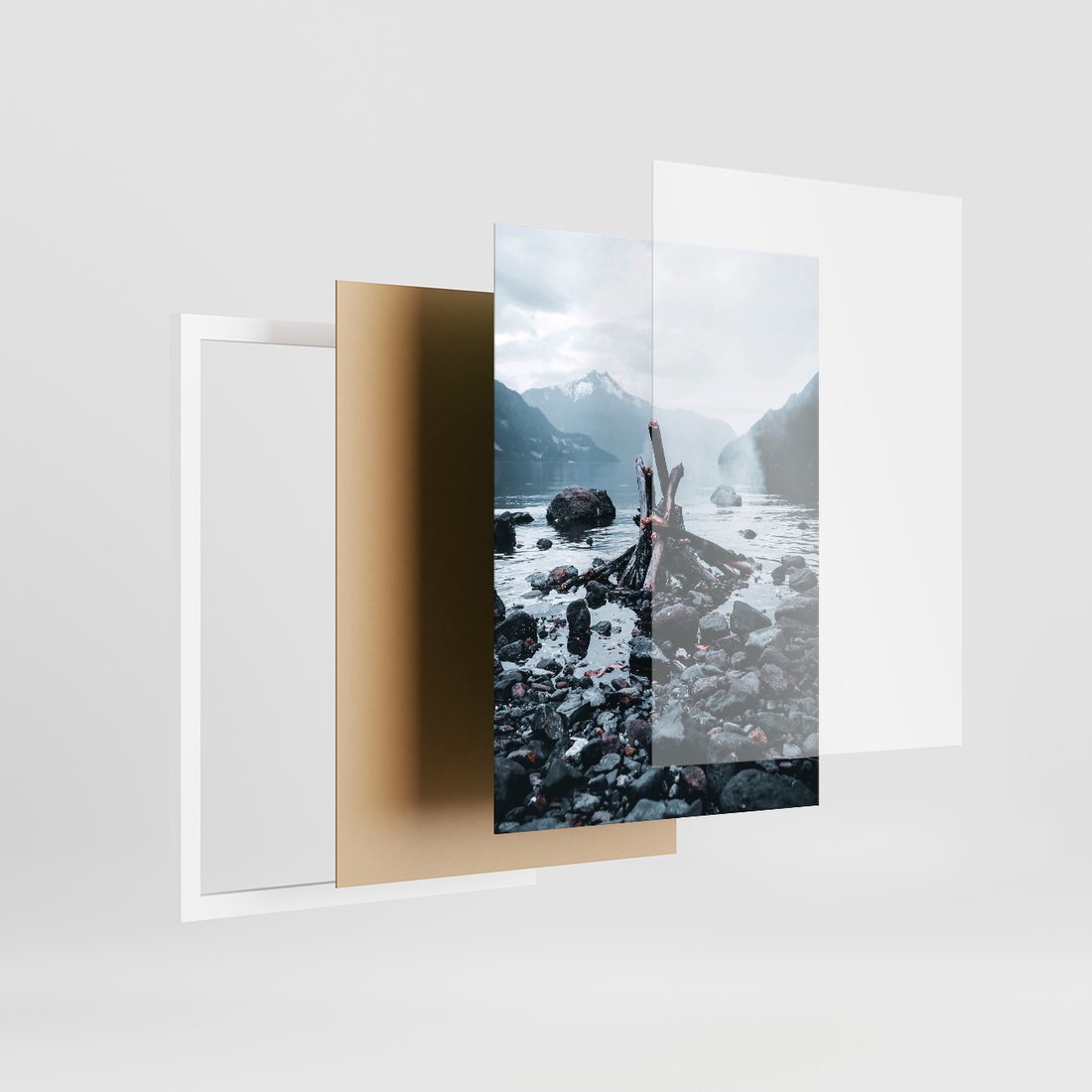 Zestaw obrazy w ramie 50x70 galeria - Zima, góry, suche, trawy, boho - rama biała