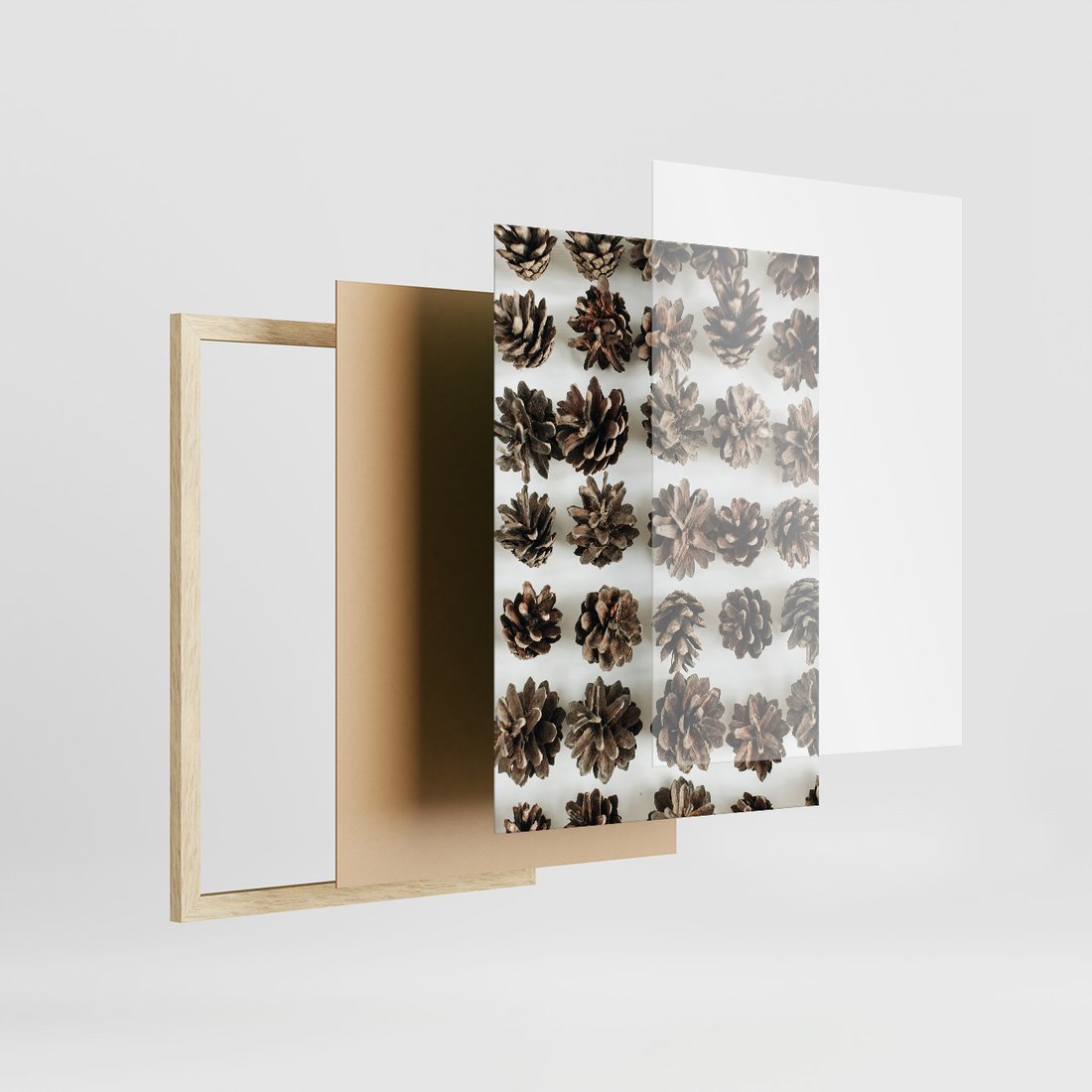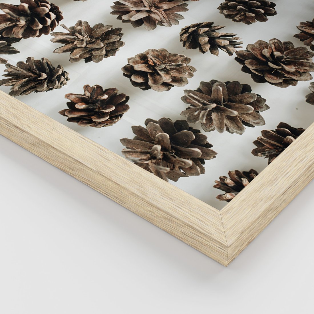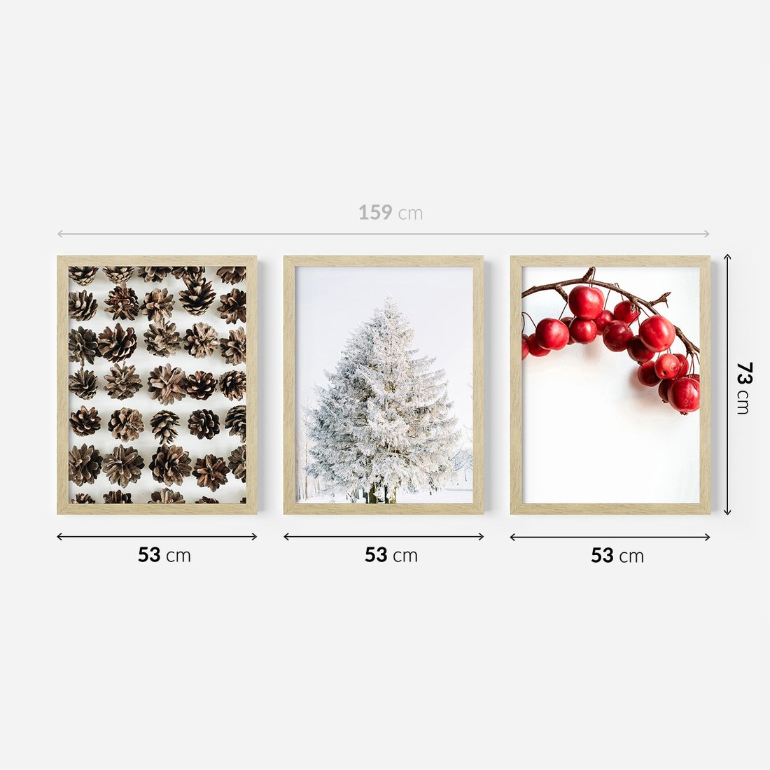 Zestaw obrazy w ramie 50x70 galeria - Zima, szyszki, śnieg - rama drewno